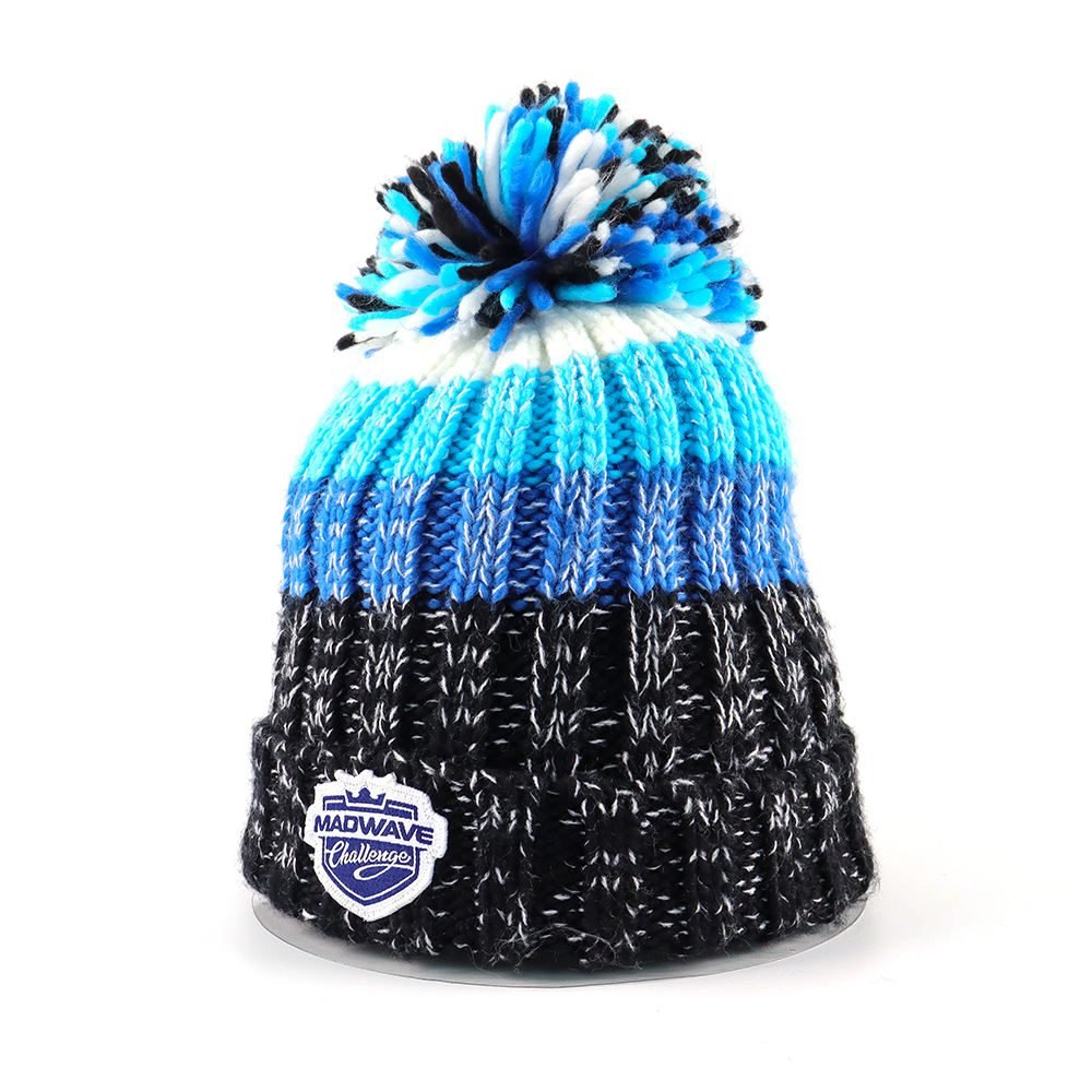 OEM Super Soft Winter Bold Knit Way Cuffed Woven Patch Logo Beanie Knit Hat With Extra Warm Cuffed Beanie Hat Custom Adults Unisex